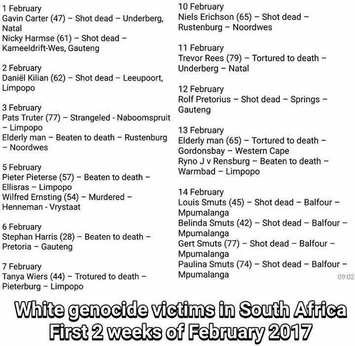 I hope and pray God will intervene to save the White South Afrikaners. The civilized world cannot call themselves civilized…